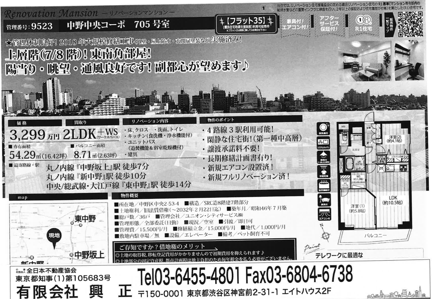 HOME | 住まいを借りる・買う | 住まいを買う | 住まいを買う・都内 | 3000万円~4000万円台・中野中央コーポ705号室